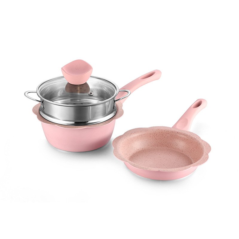 Size:16*7 cm casserole,16*4cm frying pan ,16cm steamer with lid